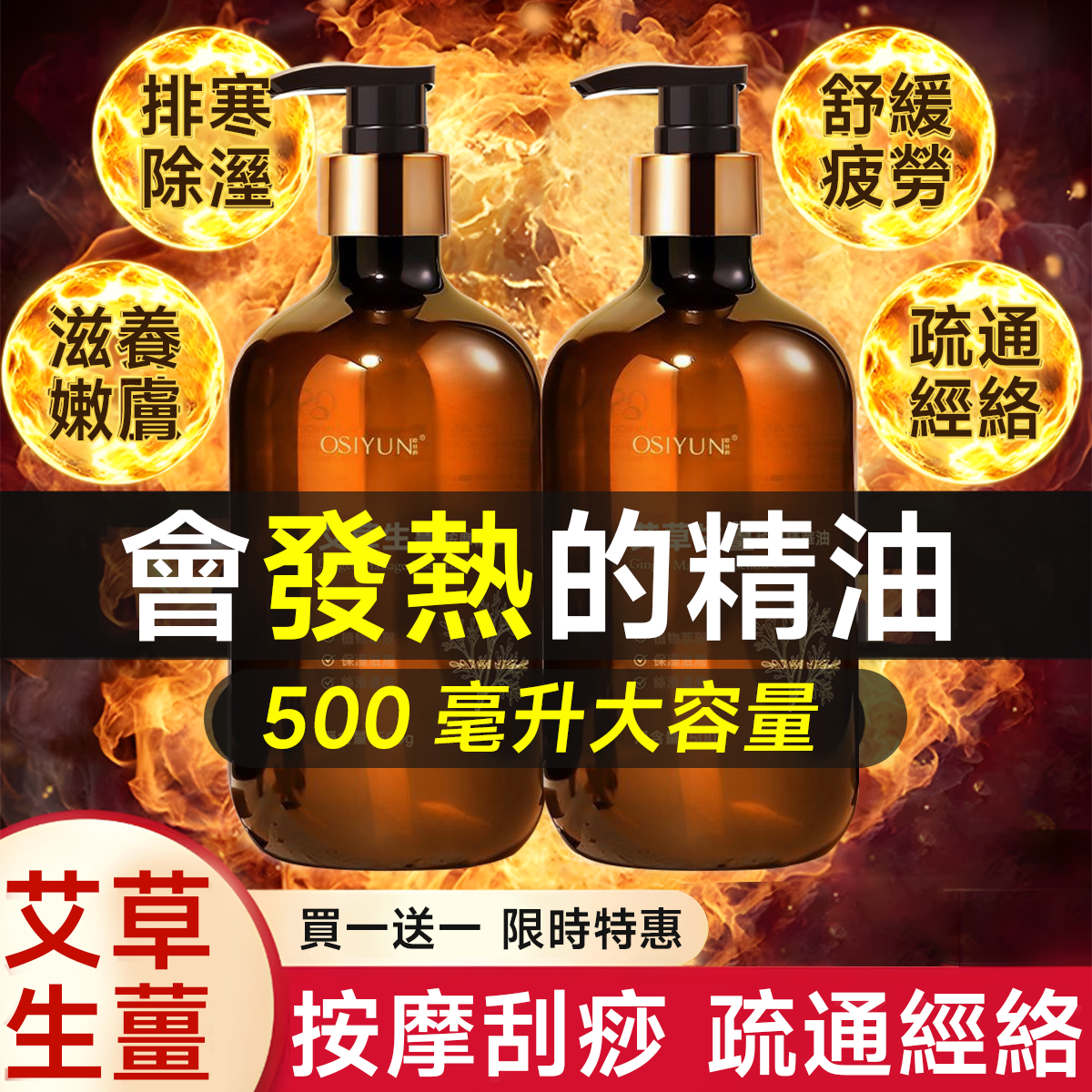 20分鐘前艾草生薑按摩精油 - 融合艾草和生薑精華,發熱配方,深層排毒去濕,疏通經絡,適合全身按摩 - 【超值活動】98%人選擇,3入組僅需NT$-1342元
